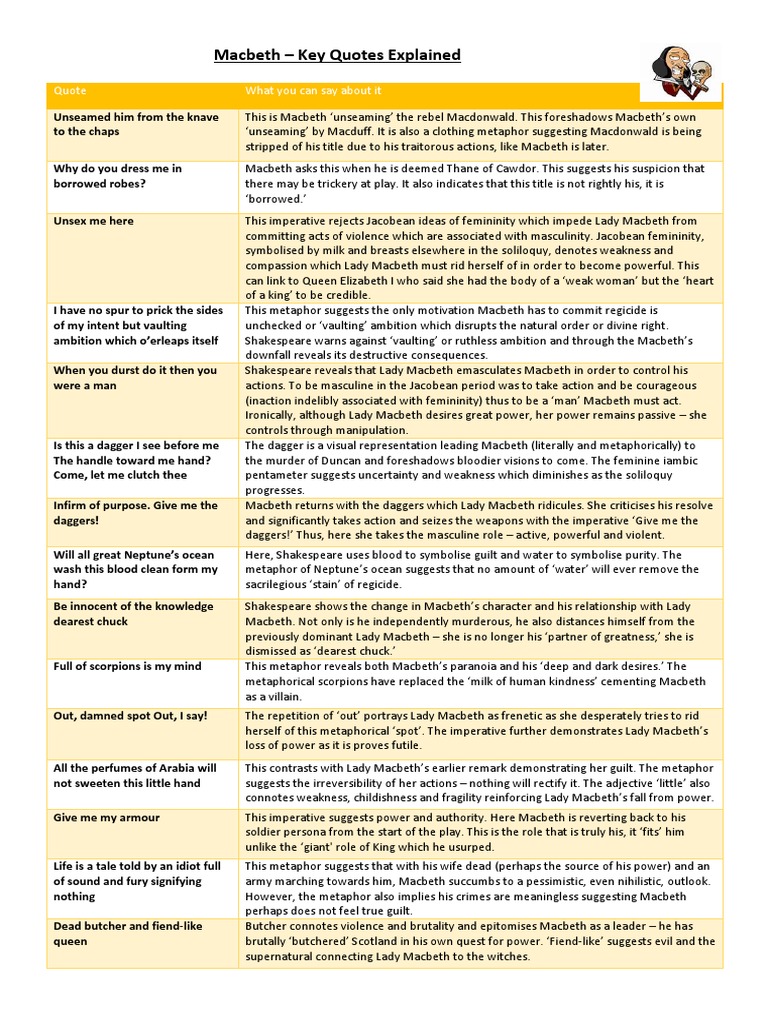 Macbeth Quotations 1 Macbeth Key Quotes Key Quotes Gcse Poems